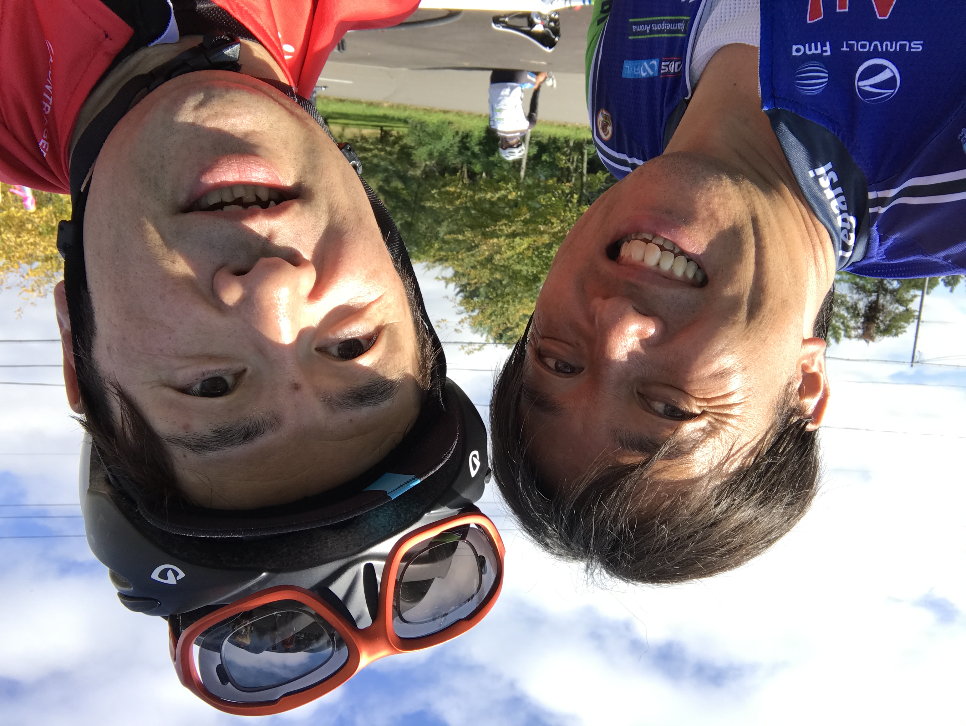 何故なら、コンタドール選手が小顔なことは十分承知していて、ツーショとの際は自分が後方寄りに遠近法を駆使しようと考えていましたが、いわゆるサイン会状態でしたので、壇上のスタートと手前の自分という<魔の構図>になってしまったのでした…