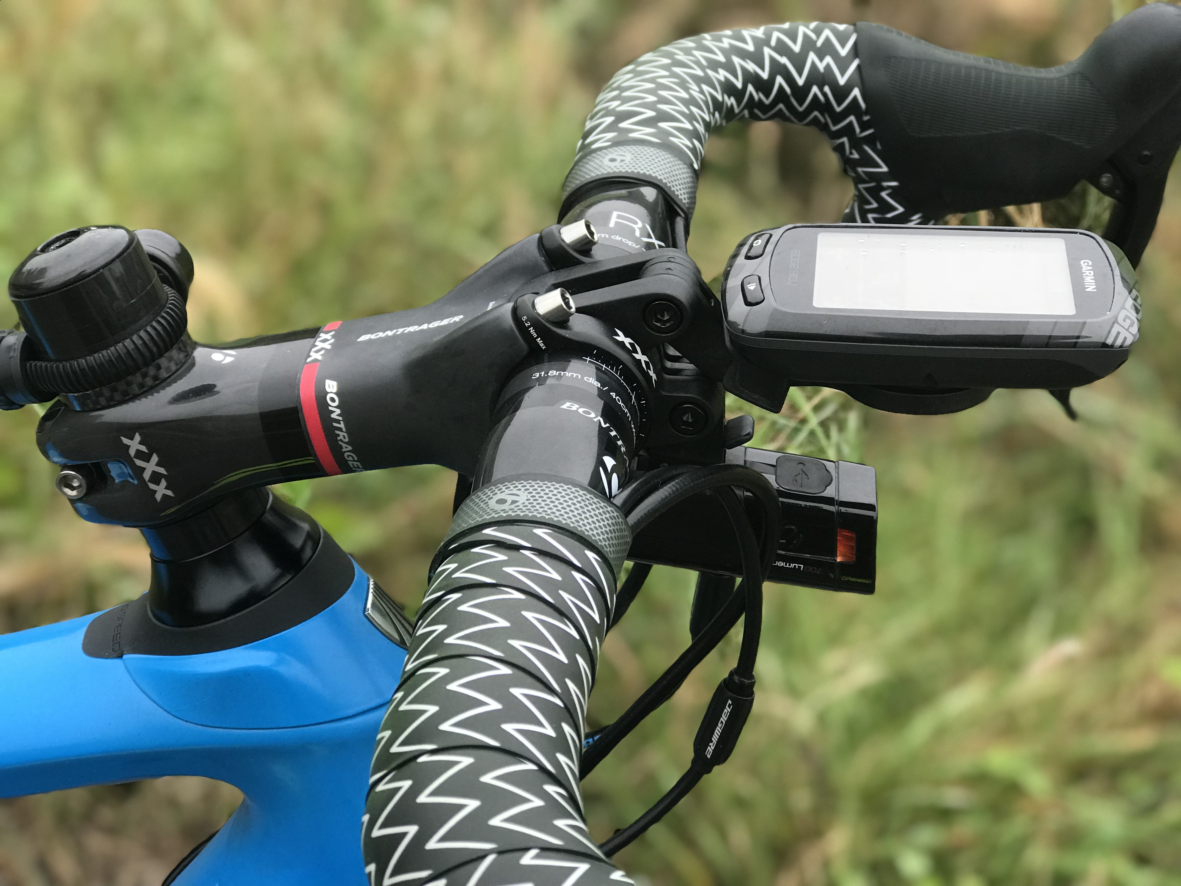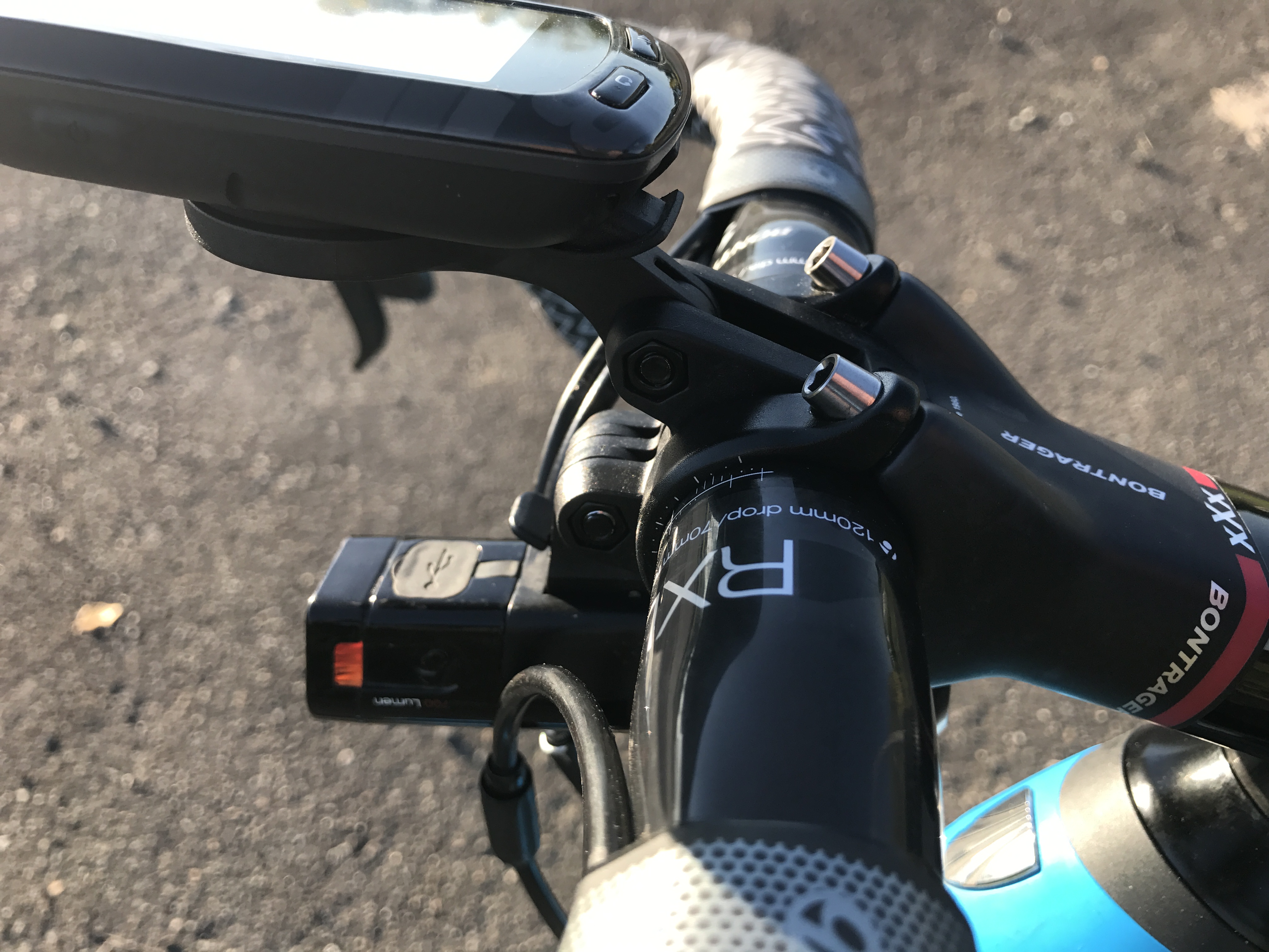 「Madone XXX Integrated Bar/Stem」にオプションの「DuoBase」に「Garmin High Mount」と「Ion Mount」を取り付けた状態