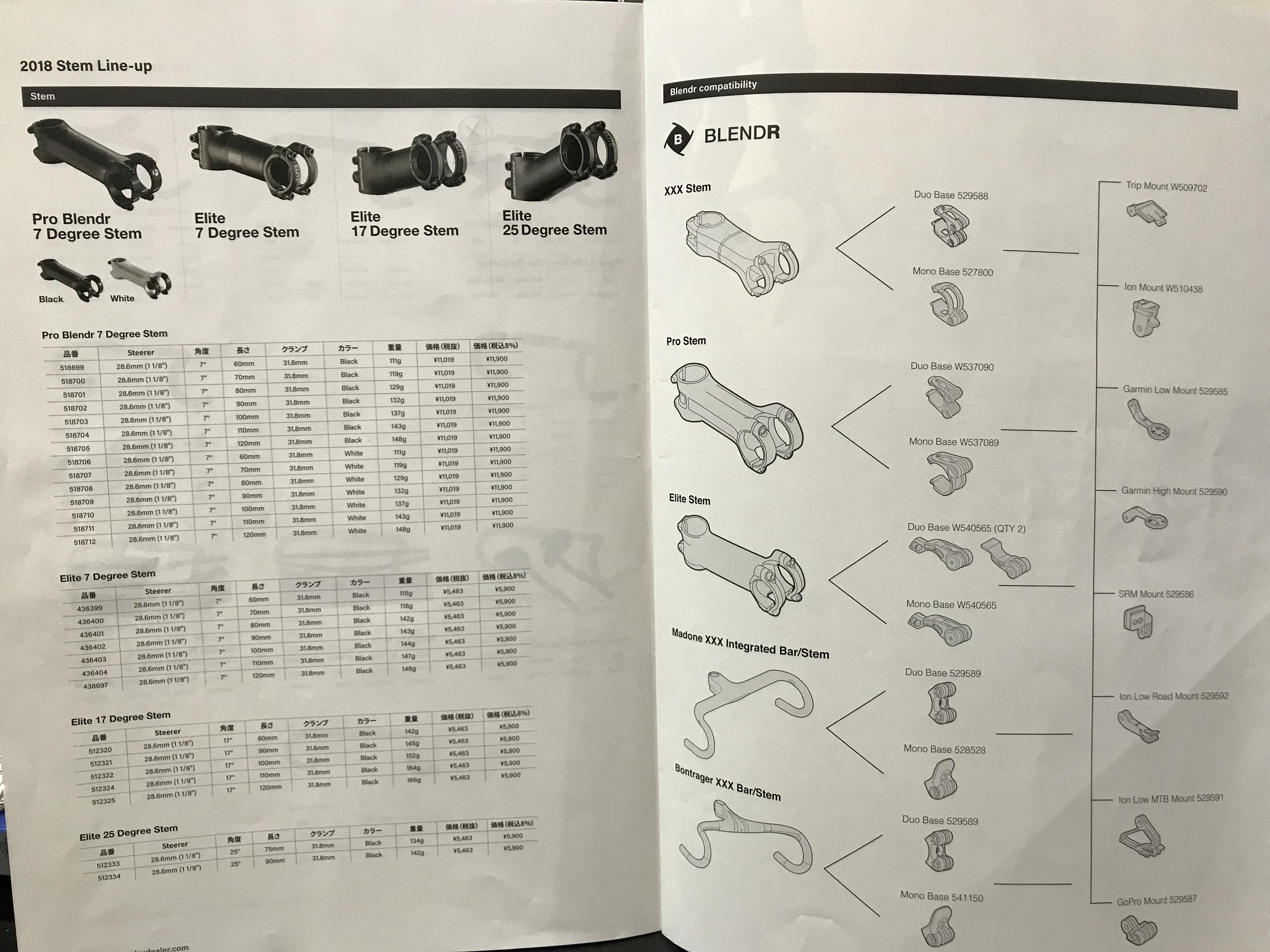 ボントレガーでは、Blender対応の各種ステムにより、ベースとマウントをチョイスするようになっています。