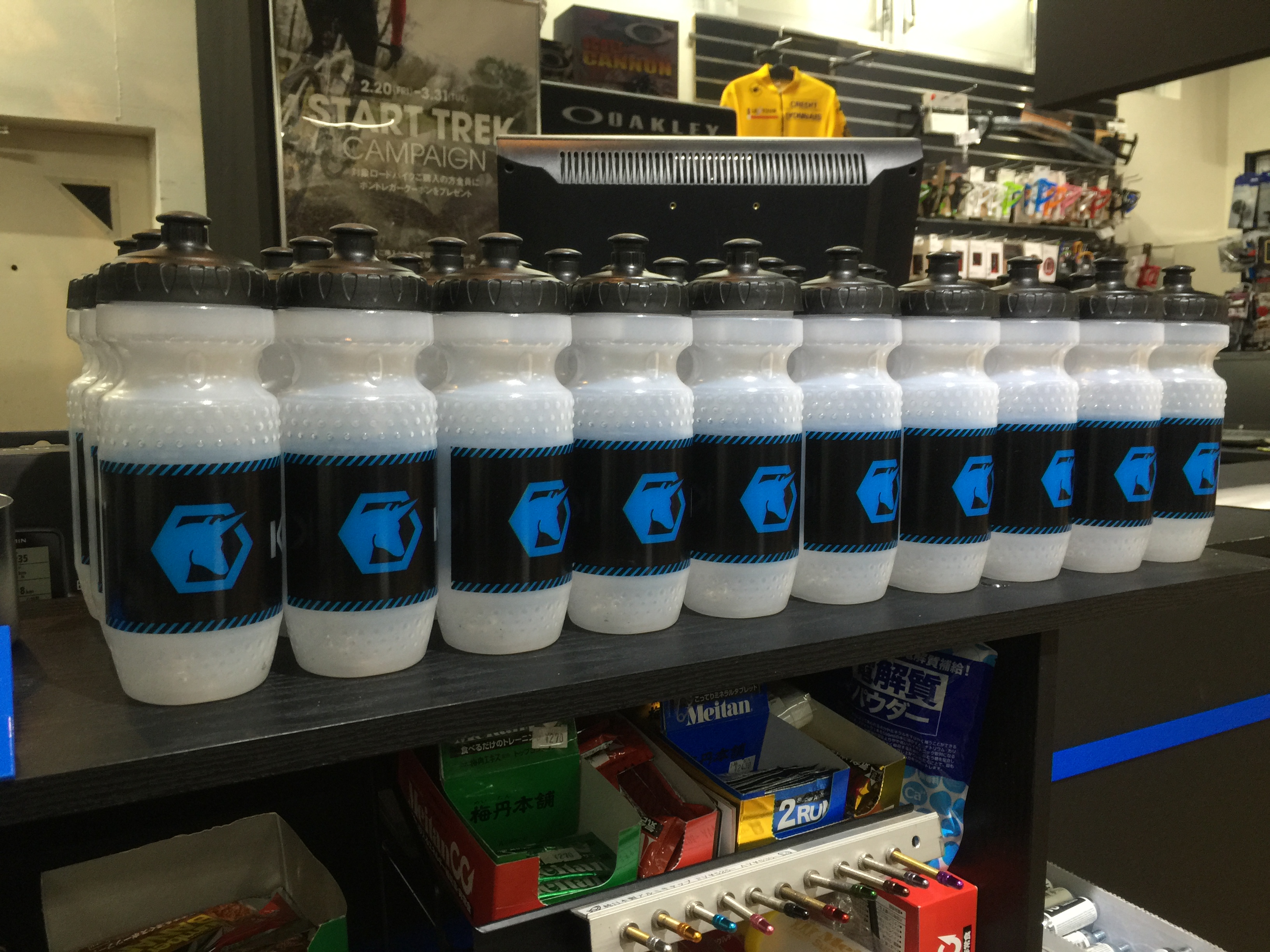 クロスバイク、マウンテンバイク、ロードバイクをご購入の際には、当店オリジナルのクリアボトルをもれなく差し上げています。いずれロングボトルや、保冷・サーモボトルも要りようになるでしょうが、手始めに使っていただきたい。