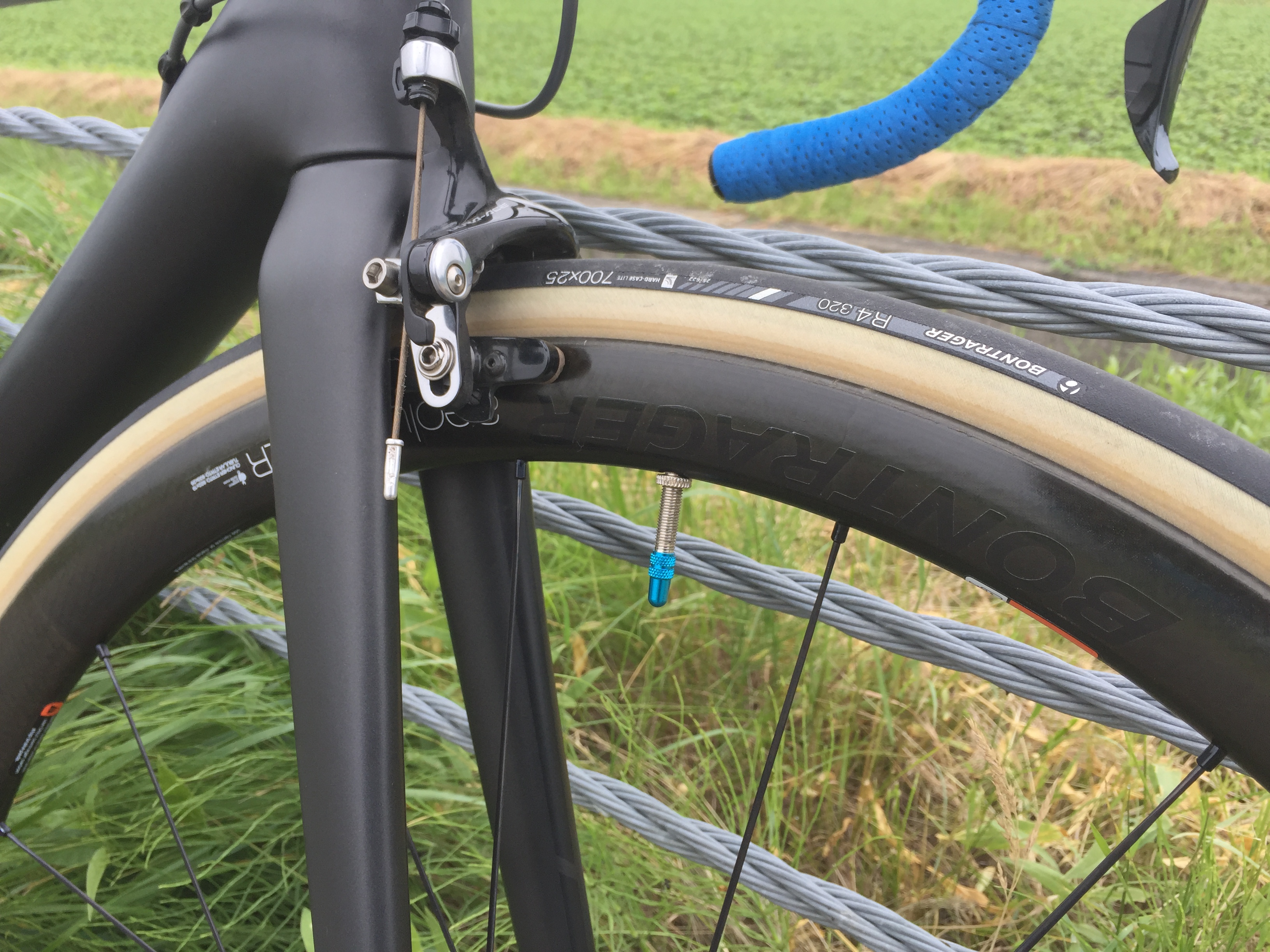 タイヤをボントレガーR3から、R4 320に。R3は120TPI、R4320は320TPIとケーシングが多いこともあり、かなりしなやかです。転がり抵抗も低く、走りも更に軽くなりました。