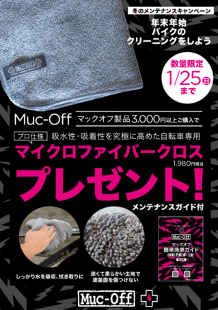 今ならなんと、マックオフ製品3000円以上購入でマイクロファイバークロス(1,980円相当)と洗車ガイドがついてきます。